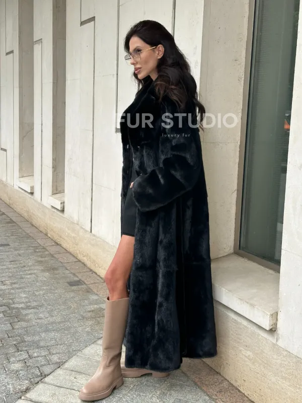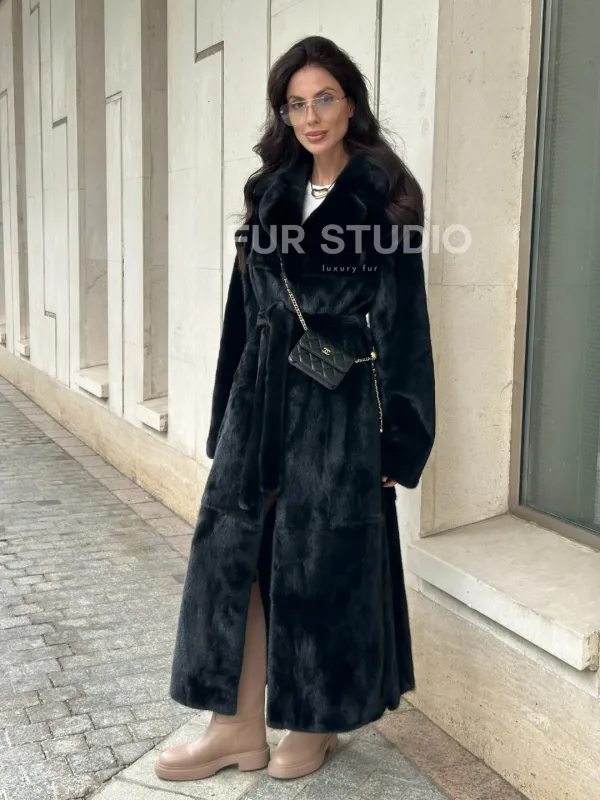 Черная норковая шуба NAFA MINK с поясом в пол доступна для покупки в нашем шоуруме Furs Studio в . У нас так же есть доставка во все города России. Добавьте немного роскоши в свой гардероб с этой шубой, которая будет служить вам многие годы.