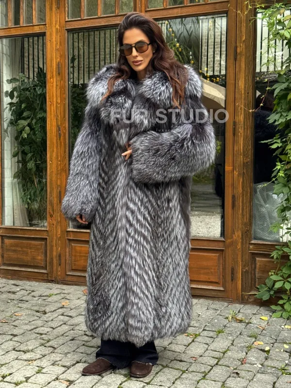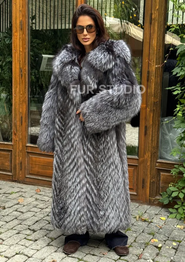 Длинная шуба из чернобурки в росшив доступна для покупки в нашем шоуруме Furs Studio в . У нас так же есть доставка во все города России. Добавьте немного роскоши в свой гардероб с этой шубой, которая будет служить вам многие годы.