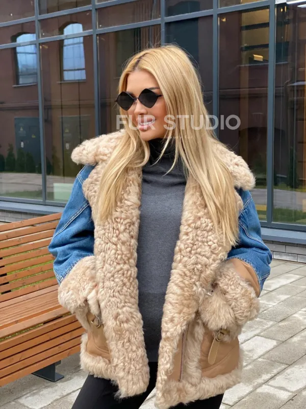 Куртка джинсовая с отделкой из натуральной овчины 100271