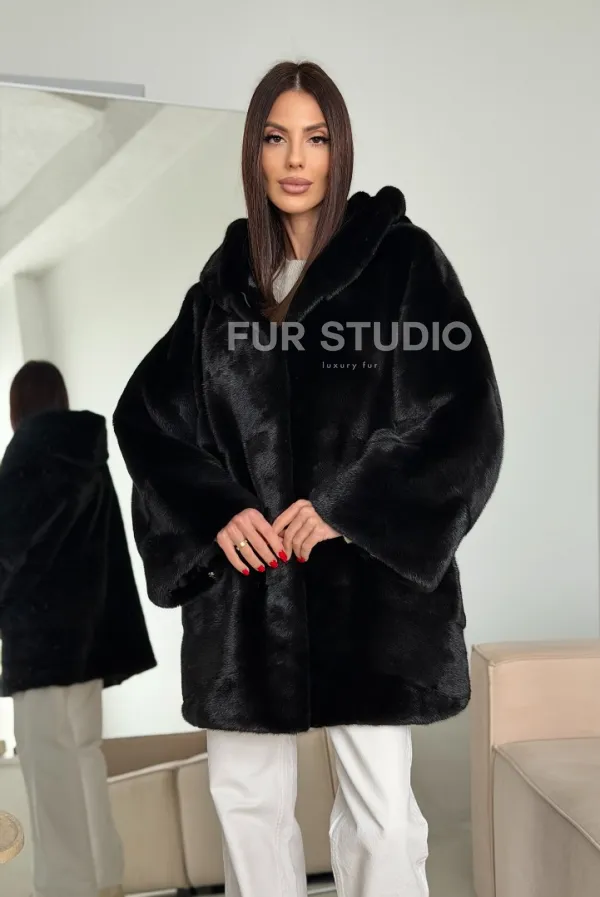 Норка шуба BLACKGLAMA паркет кимоно с капюшоном 102792