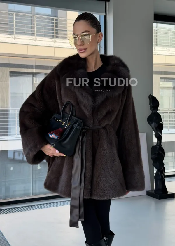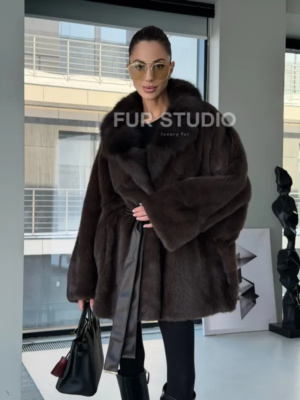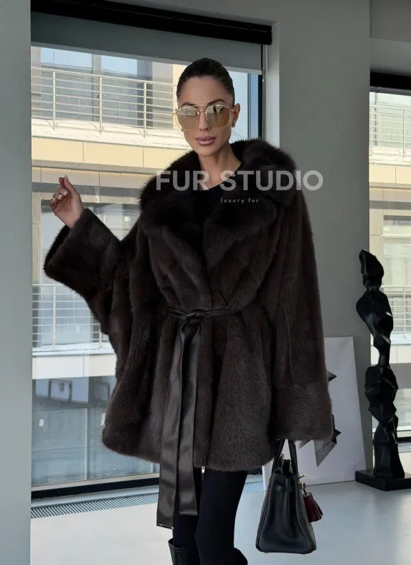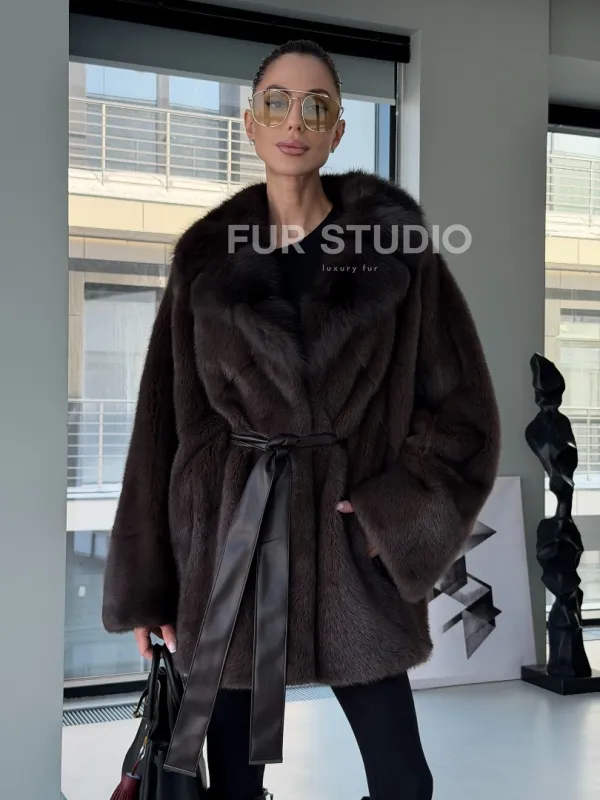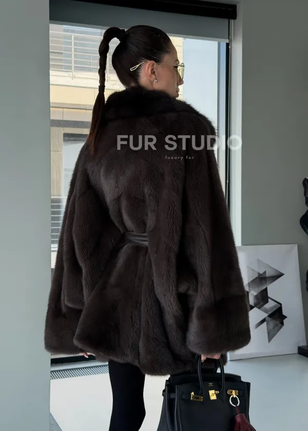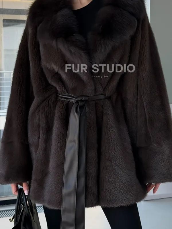 Норковое автоледи с воротником из куницы 102894