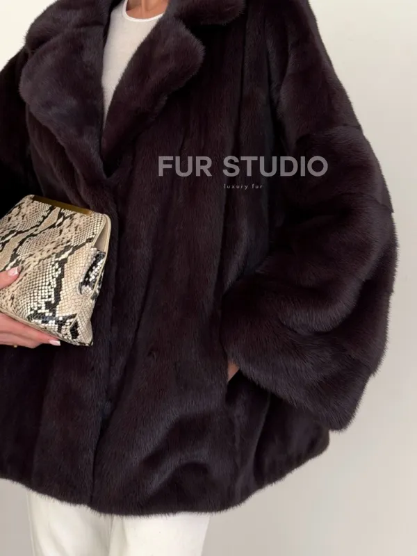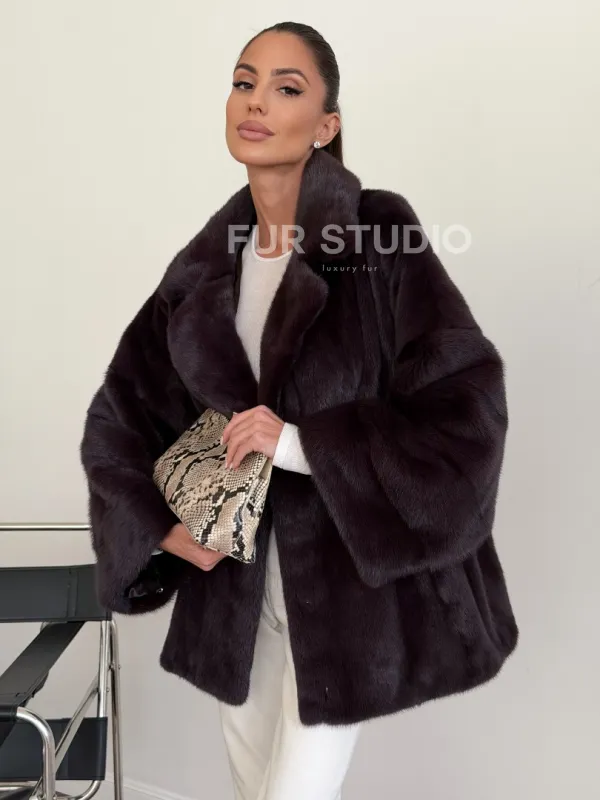 Норковый полушубок - цвет инжир 102634