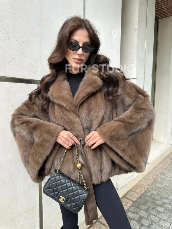 Мех данной шубы аукционная норка, цвет коричневый . Предлагается в размерах от 40 до 60 (oversize). Длина модели 60-65 см, что выгодно подчеркивает фигуру девушек. Эта модель идеально подойдет для девушек и женщин, предпочитающих роскошные натуральные меха.