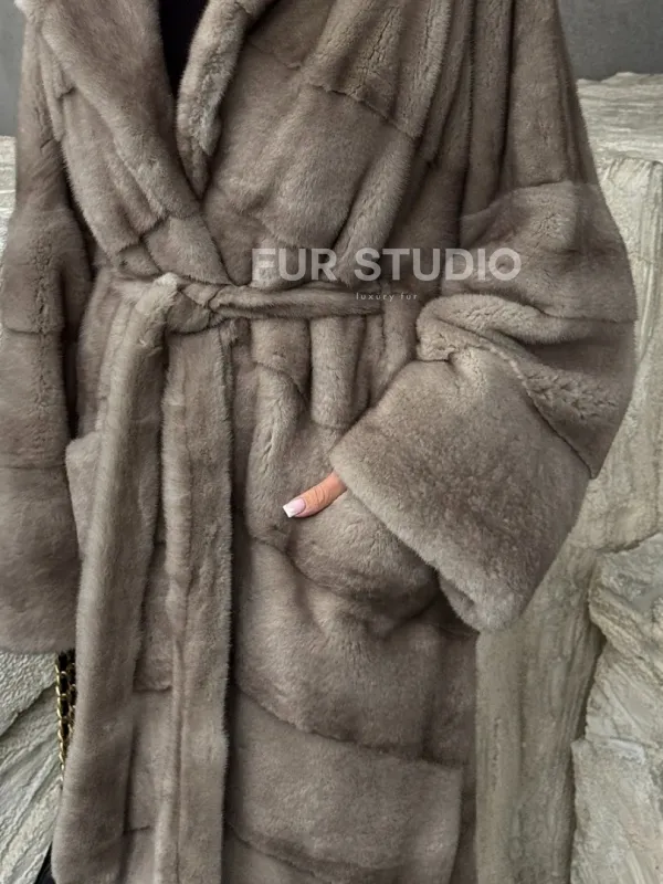 Удлинённая норковая шуба с поясом доступна для покупки в нашем шоуруме Furs Studio в . У нас так же есть доставка во все города России. Добавьте немного роскоши в свой гардероб с этой шубой, которая будет служить вам многие годы.