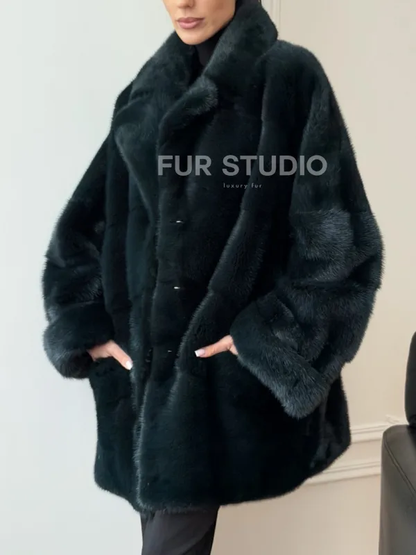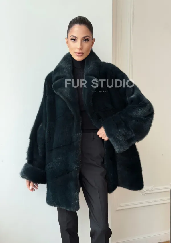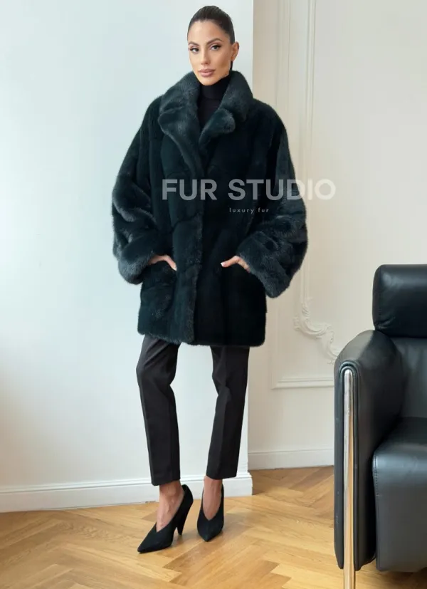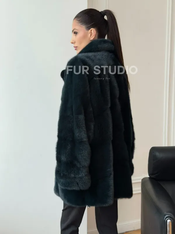 Зеленая норковая шуба - жакет 102731