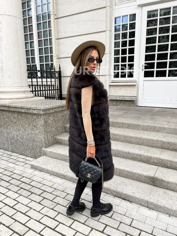 Жилет из куницы в цвете соболь 100285